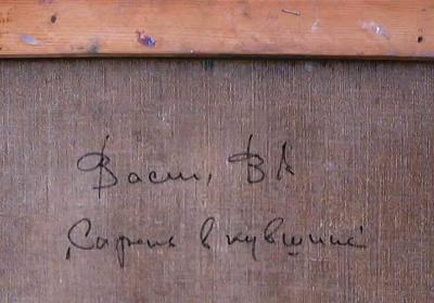 1970, oil on canvas, 24 x 27in (60 x 70cm). Signed on both sides by artist in Cyrillic. Unframed, in good condition.