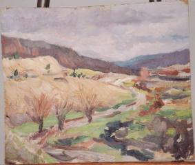 Gloomy Day. Oil on cardboard, 12 x 15in. (32 x 38cm.) Unsigned. Offered unframed and in good condition.